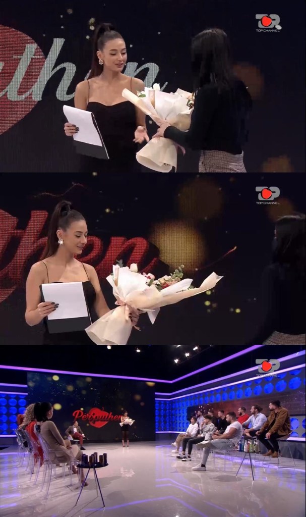 Gjatë puntatës së sotme, ku prezantuese ishte Ana ndodhi një surprizë e bukur për bukuroshen. Duke prezantuar takimin e Erisit dhe Ledjanës, ajo mori një dhuratë simbolike. Në një moment gjatë prezantimit fjala e saj u ndërpre pasi u befasua nga një buqetë me lule. Buqeta shoqërohej edhe me një shënim mjaft të bukur: “Sytë e tu nuk më lënë indiferentë, në fund të transmetimit, do të dëshiroja një takim me ty”.