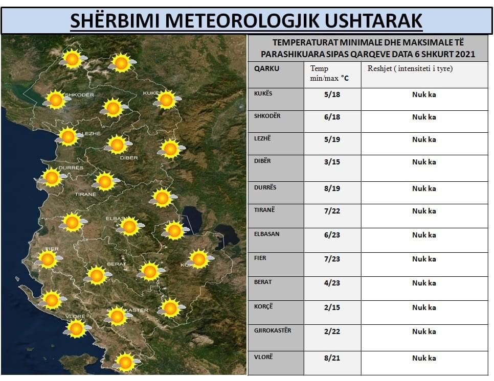 Në zonën e veriperëndimit dhe atë të jugut reshjet e shiut në periudha kohore të caktuara pritet të jenë me intensitet të lartë.