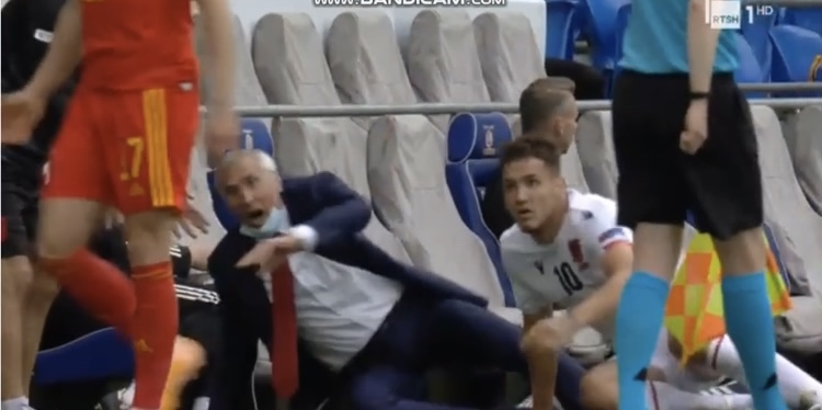 I pari në minutën e 58-të të takimit pas një dyluftimi të sulmuesit Manaj dhe mbrojtësit uellsian Daies, ky i fundit shtyu lushnjarin i cili u përplas me teknikun Edi Reja. Momenti i sikletshëm nuk u prit mirë pasi vetë tekniku Reja reagoi ashpër ndaj futbollistit kundërshtar.