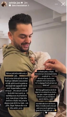 Ish-bashkëshortja e këngëtarit Shpat Kasapi ka shpërndarë një reagim të thellë emocional pak pas ndarjes së tij nga jeta, duke publikuar një video ku këngëtari shihet duke mbajtur në krahë djalin e tyre, Roelin. Postimi është shoqëruar me një mesazh të gjatë e tronditës, ku ajo tregon momentet e fundit, sakrificat e përbashkëta dhe dhimbjen që ka lënë pas vdekja e papritur e artistit.